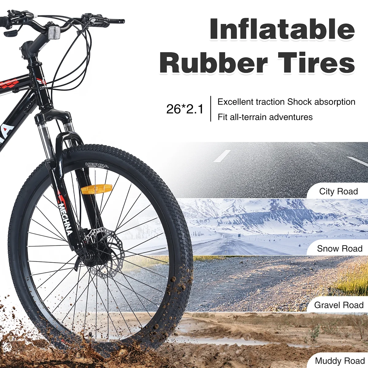 Ideale Größe für Erwachsene – Dieses 26-Zoll-Fahrrad ist für Erwachsene oder Fahrer mit einer Körpergröße von 1,63 m bis 1,88 m geeignet und perfekt für Fahrten auf Stadtstraßen, unbefestigten Wegen, Schneepisten, Schotterwegen usw.