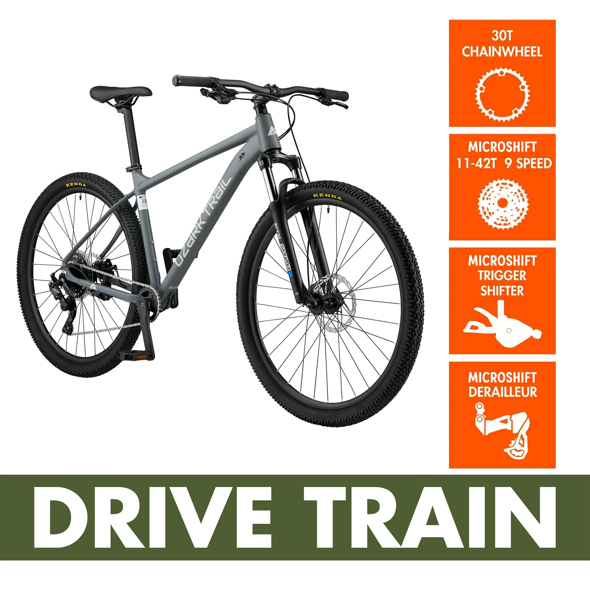 29″ Ozark Trail Ridge Mountain Bike, Small Frame, Fits Riders 5’0″ – 5’6″, Gray, Adult, Unisex